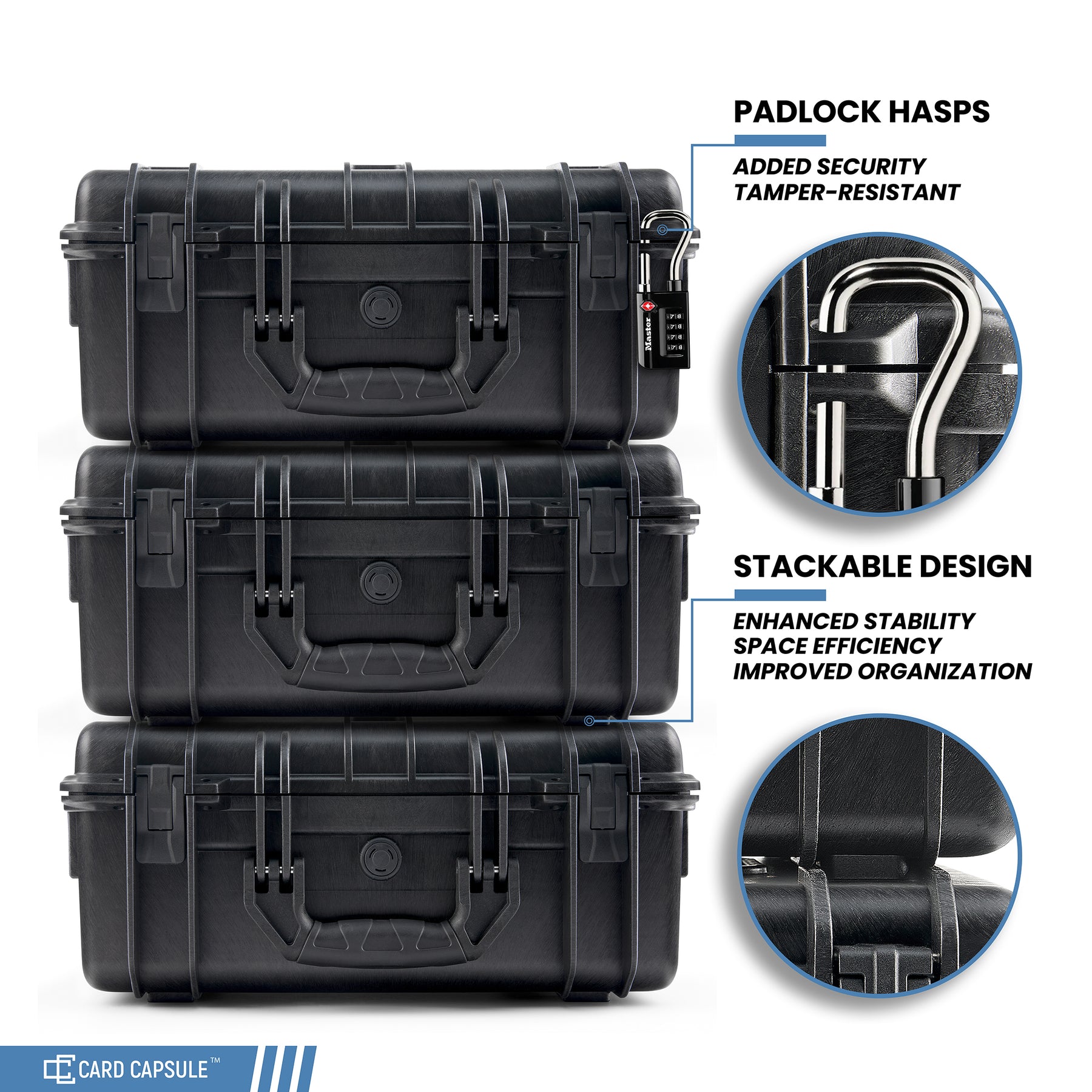 · Stackable Design: Easily store multiple cases without worrying about space, thanks to the stackable design that ensures safe and convenient storage.