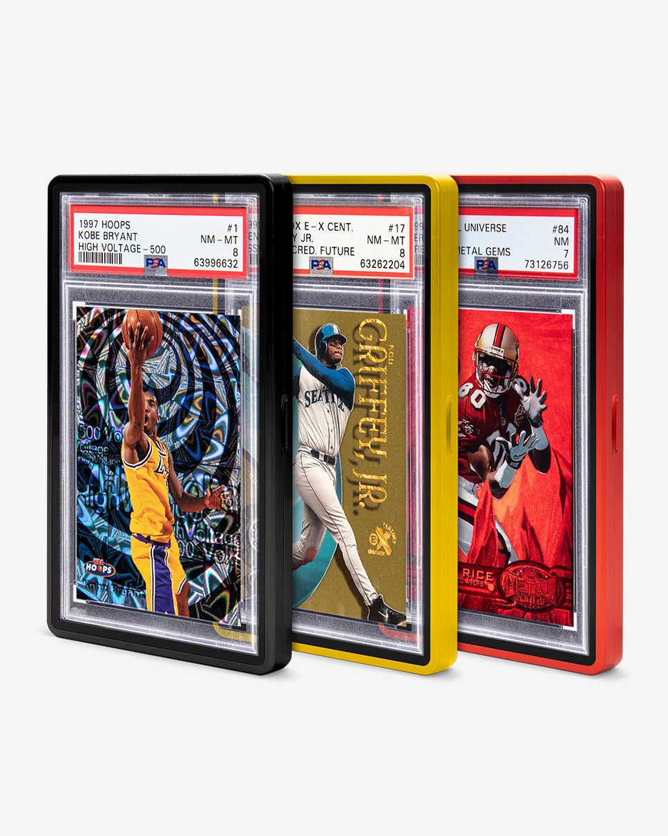 Card Capsule Slabmates are expertly crafted from lightweight yet sturdy aluminum, offering exceptional protection for your graded cards. These robust holders shield your slabs from surface scratches and the harmful effects of UV exposure. Additionally, they features crack-resistant tempered glass, providing excellent protection while keeping your cards clearly visible.