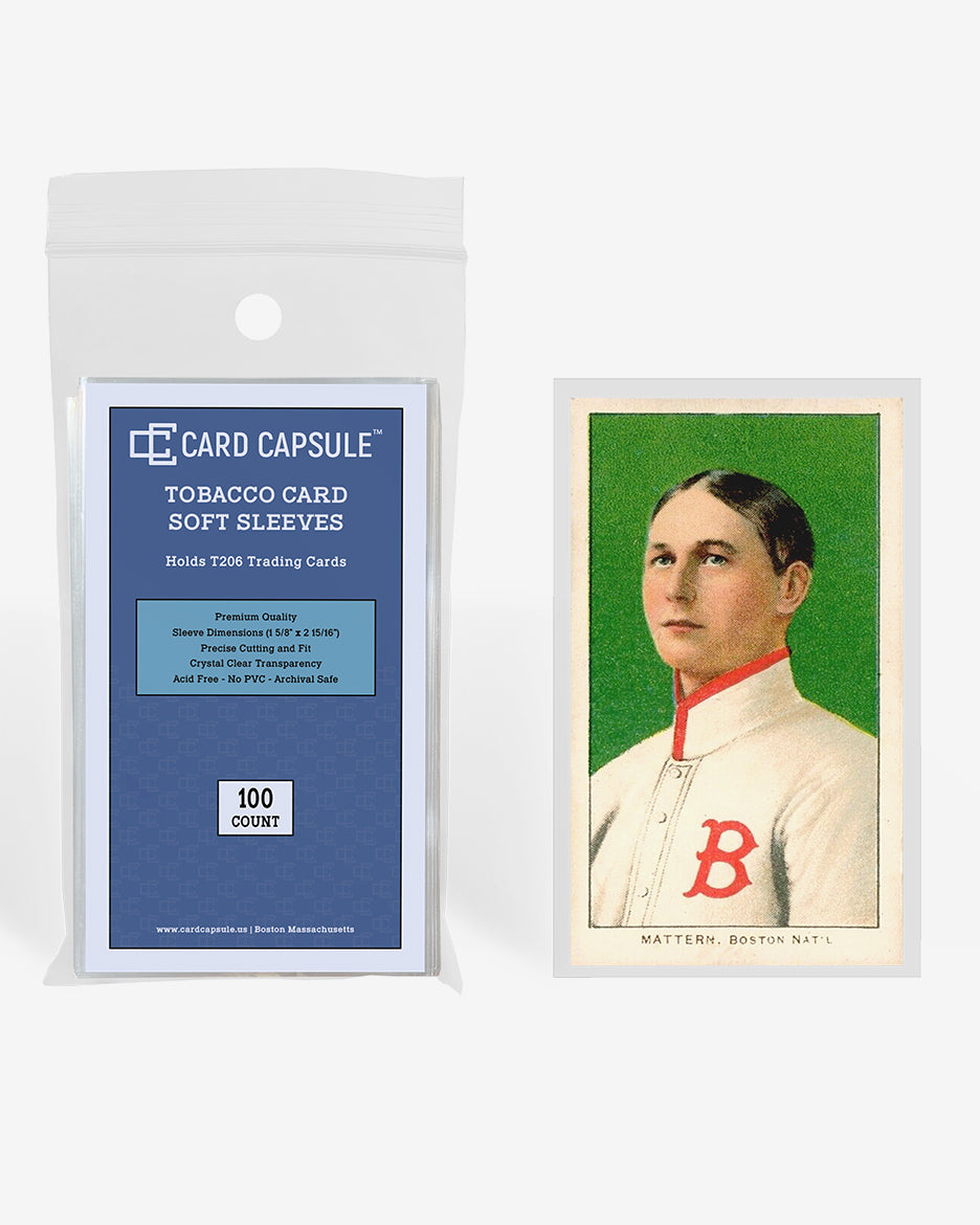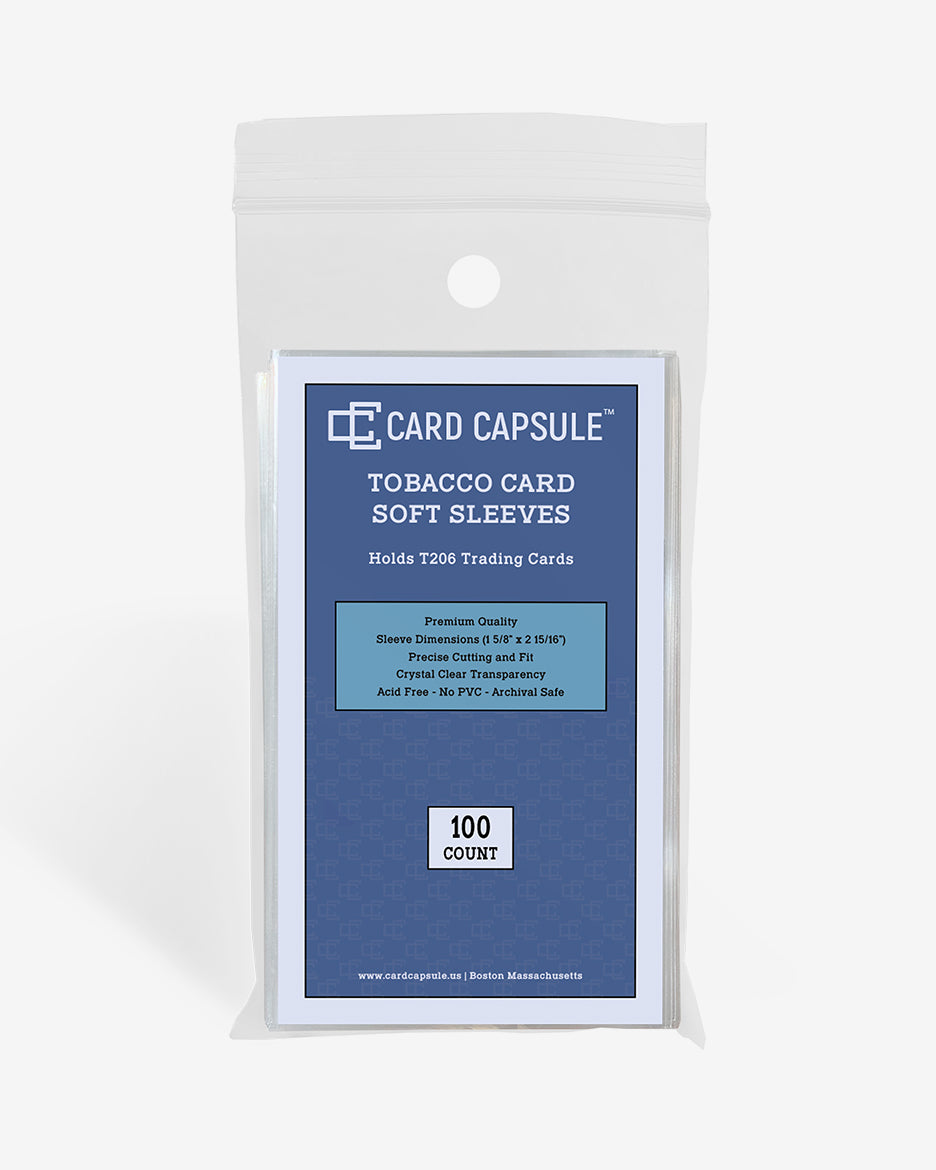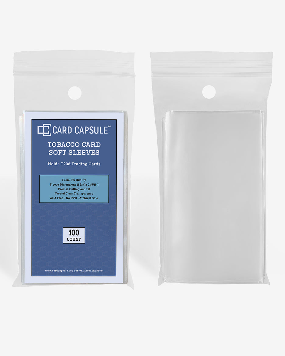 The CARD CAPSULE T206 Sleeves are specifically designed for T206 and tobacco-sized trading cards. These sleeves are acid-free, archival safe, and free of PVC, ensuring the preservation of your cards. Constructed from high-quality, crystal-clear plastic, they provide excellent protection for tobacco cards.
