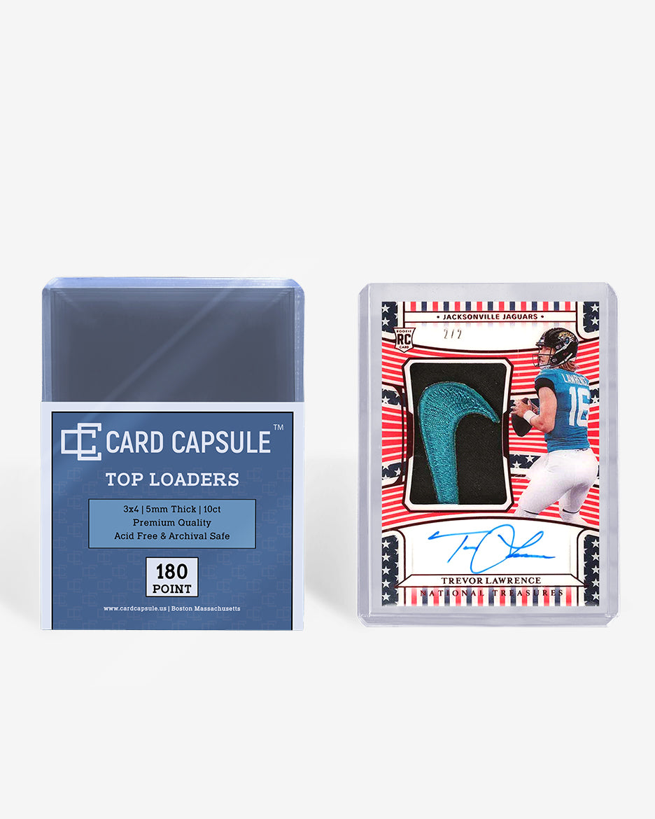 Designed to hold cards up to 180 point, CARD CAPSULE 180 pt toploader hard cases are acid-free and archival safe. Made of the highest quality crystal clear plastic, these card holders provide great protection for trading cards.